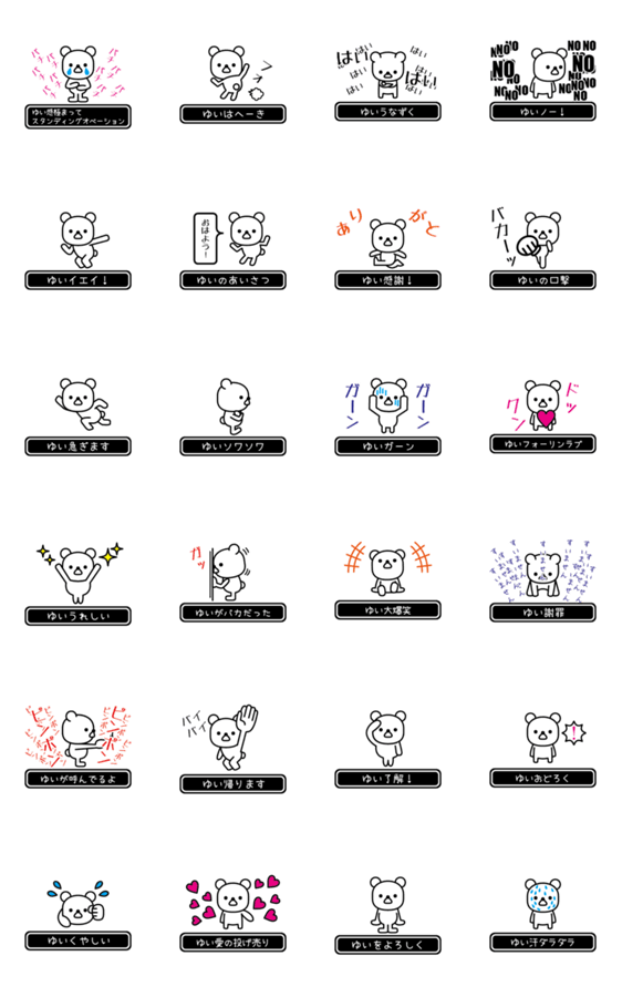 | スタンプ説明 | ゆいちゃんが高速で動く名前スタンプが登場!高速で動きがちなユイさんのための苗字・名字スタンプだよ!高速のゆいさんはとってもイケてるんだ! |