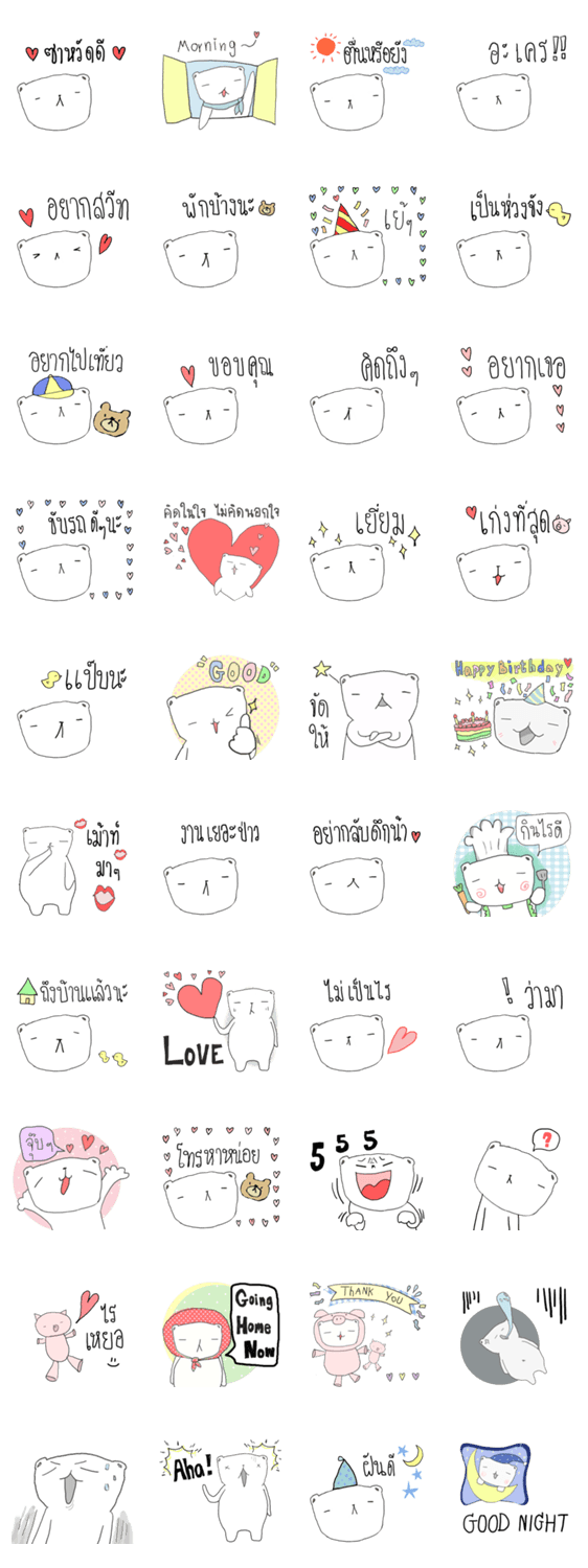 白ネコのあいうえお・・・ってるスタンプ