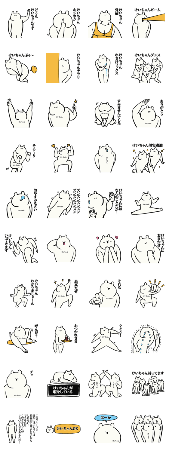 | スタンプ説明 | けいちゃん(けいこ.けいた.けいご.けいすけ.けいいち.けいと.さん等)ケイちゃんのための名前スタンプです。 |