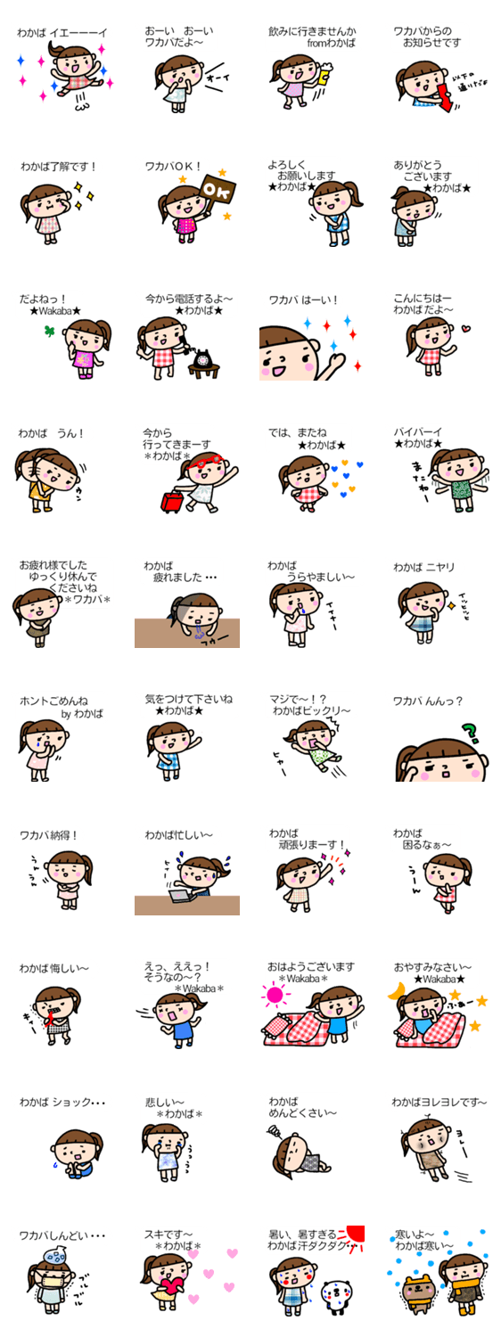 「わかば」「ワカバ」の署名入りスタンプです。大好きな家族・恋人・友達へぜひ名前入りのスタンプを送って下さい。吹き出しで使いやすいです!!