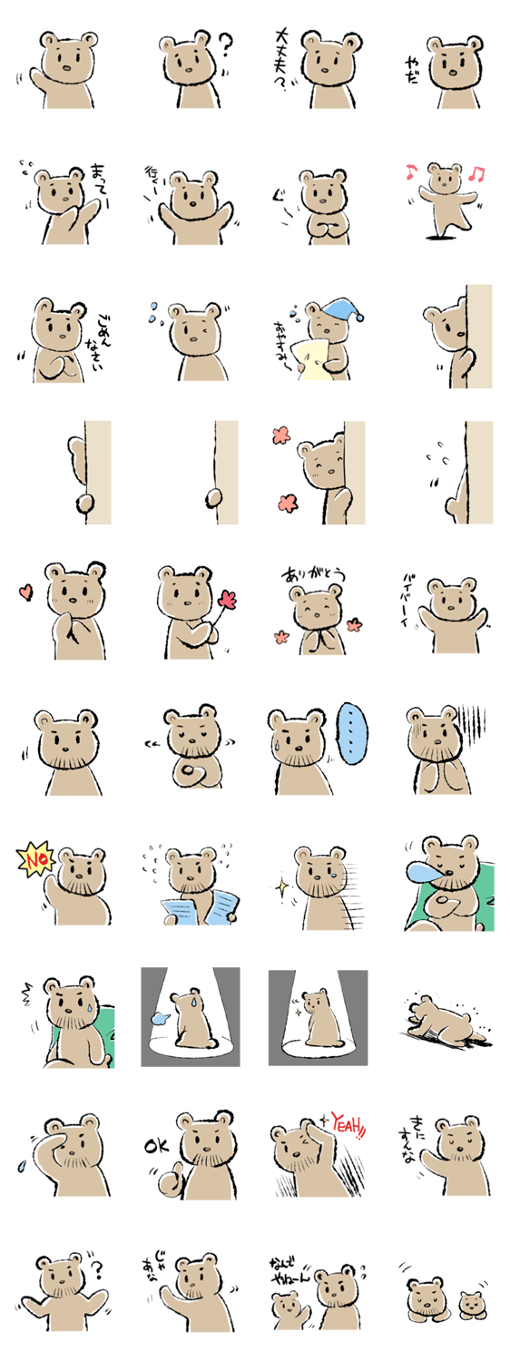 ちょっぴりシャイな小熊と、働き者の父熊のスタンプです。