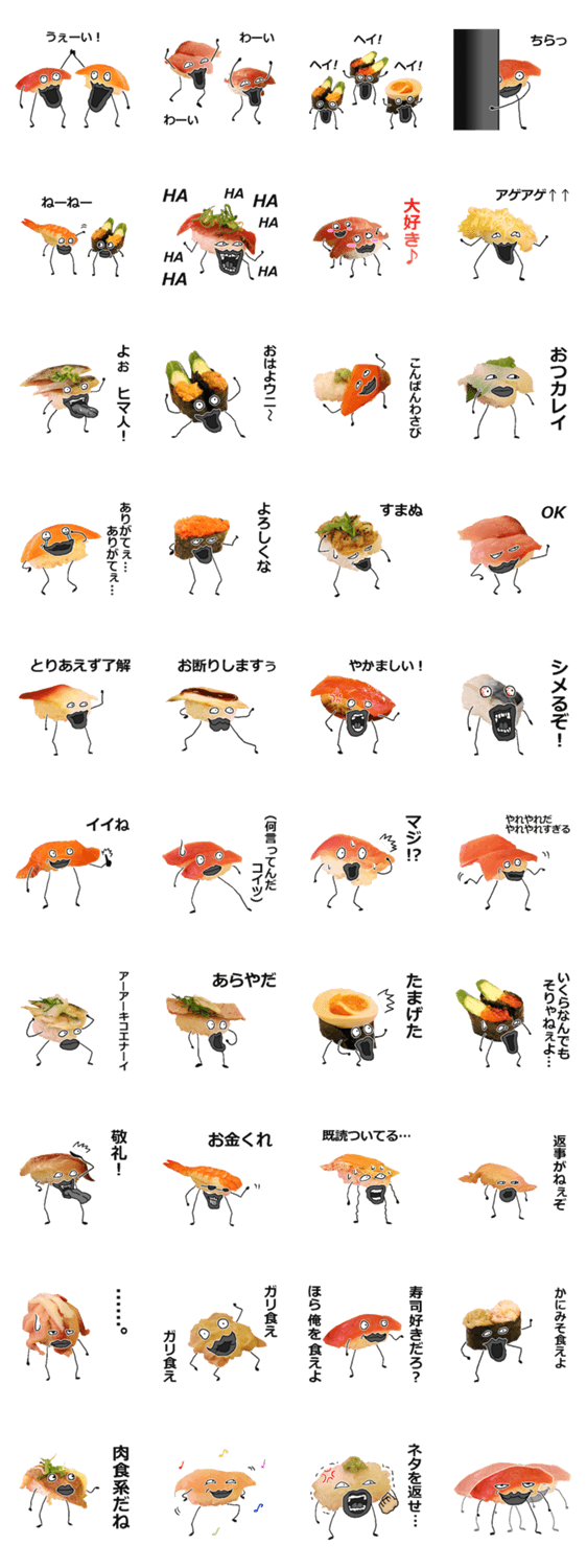 ウザい、ムカつくお寿司のスタンプです。40個入り。