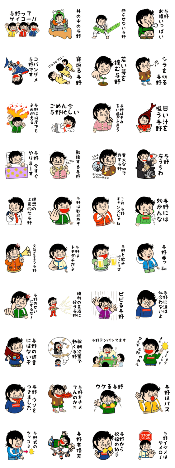全国の与野さんのためのスタンプです。よのよのもへじが冗談を連発します。仲の良い友だちに送ってください。