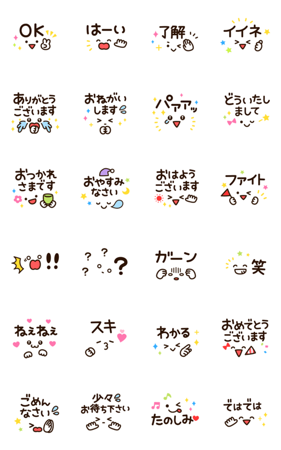 シンプルでゆる可愛い表情が楽しく動きます!使いやすい&デカ文字で見やすい♪