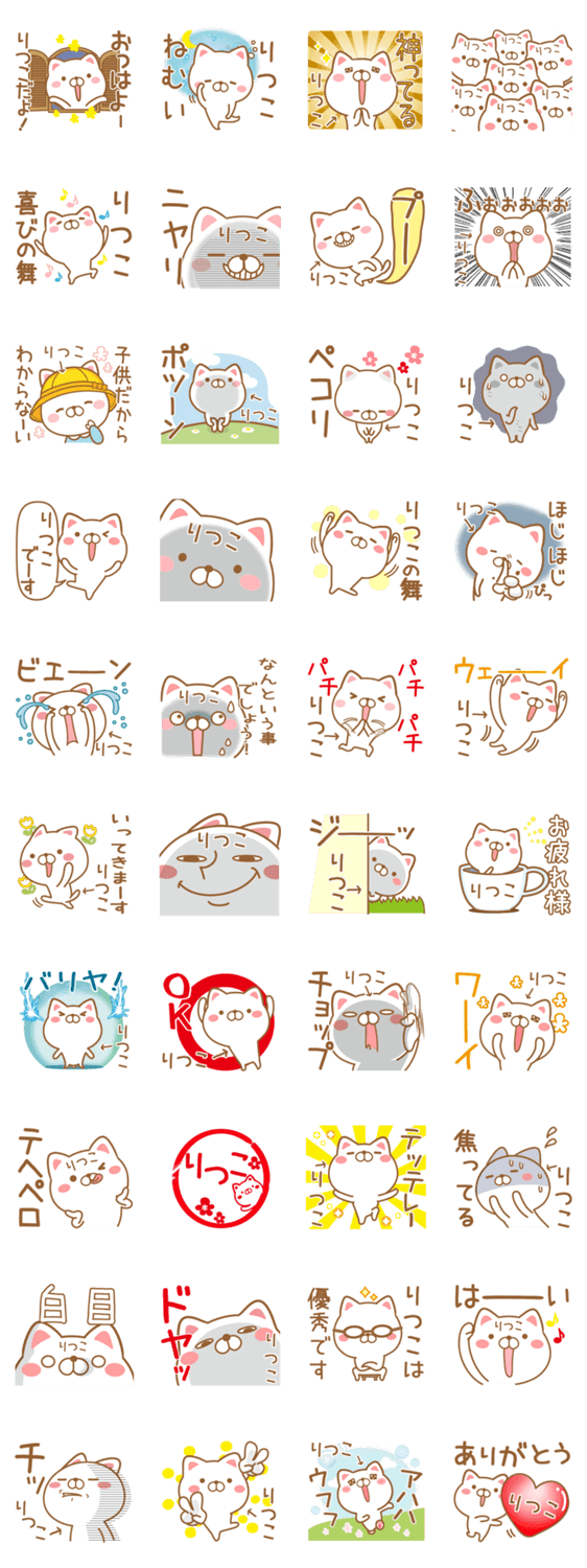 白ネコのあいうえお・・・ってるスタンプ