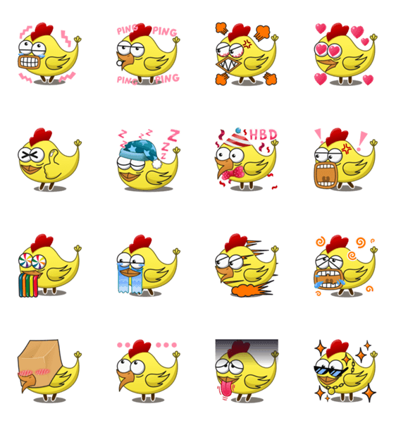 | スタンプ説明 | let's be happy with this yellow crazy chicken,,, |