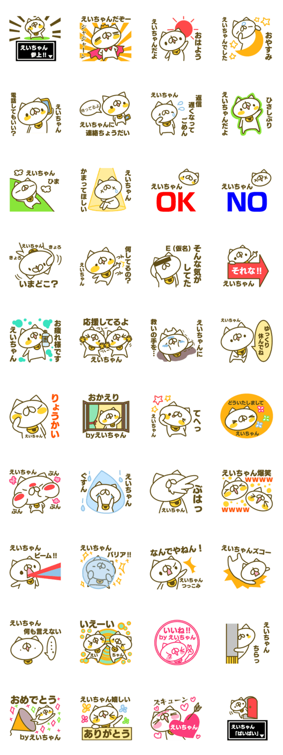(英ちゃん、瑛ちゃん、永ちゃん、栄ちゃん、秀ちゃん)えいちゃんのお名前スタンプ。えいちゃんが友達や知り合いに送るスタンプ