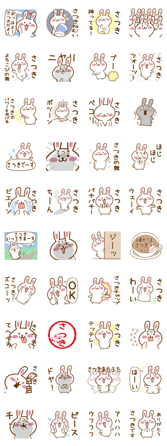 さつきさんが使うスタンプ。五月,皐月,皐,沙月,砂月,五月女,札木,佐月,佐津紀,咲月,彩月,早月,桜月,皋,颯希,颯樹など全国のさつきがつく人専用のスタンプ
