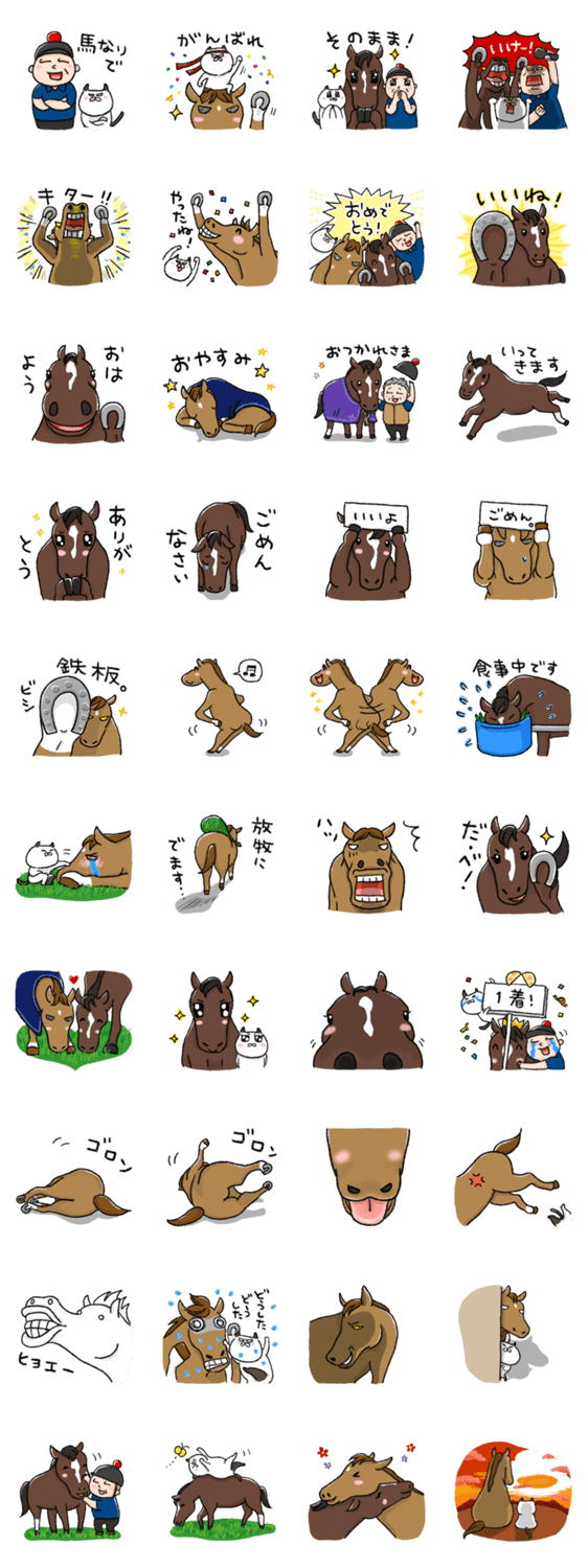 馬が好き!サラブレッドが好き!そんなあなたへ!!お馬さんと牧場の仲間たちの日常をスタンプにしてみました。
