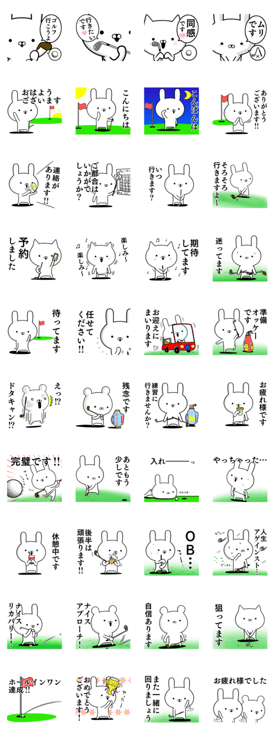シンプルに挨拶やコースラウンド、コンペ、練習の連絡やお誘いができる、女性でも使いすい基本スタンプ!敬語多めでゴルファー同士の日常会話や友達,恋人,家族や仕事にも。