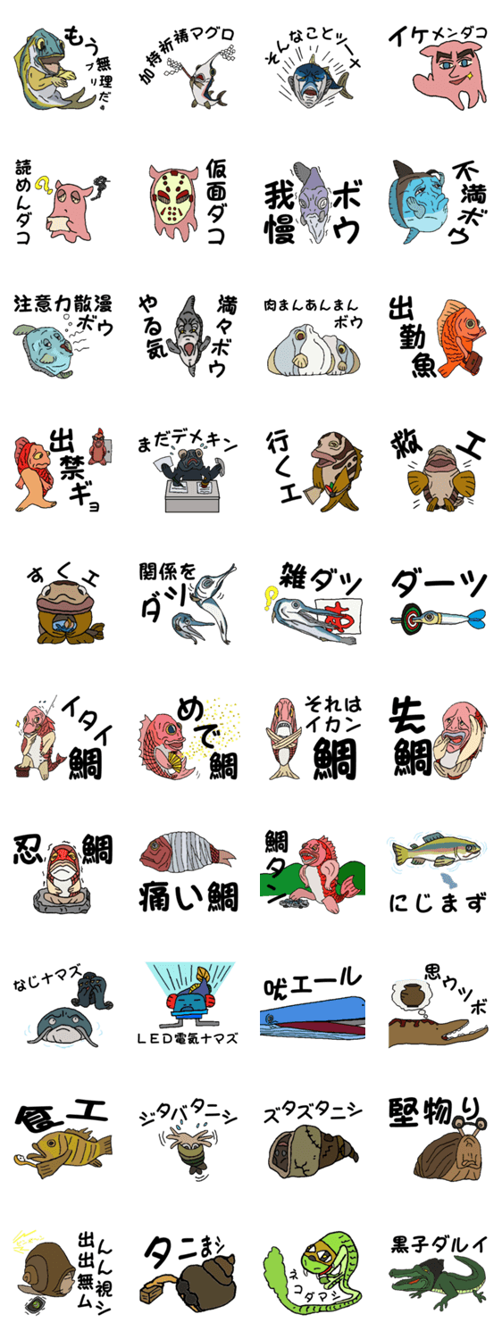 スタンプ説明 魚の名前でダジャレた小洒落たスタンプ。