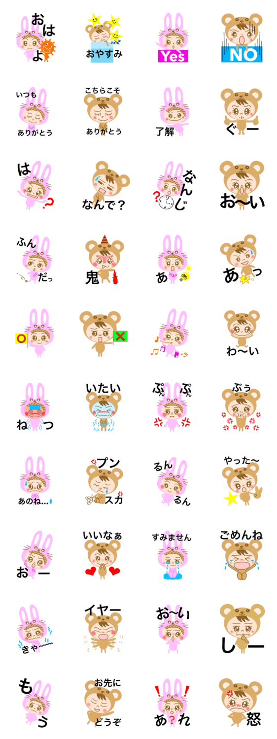 | スタンプ説明 | coco of the rabbit and moco of the bear. The Sticker which it is easy to look at in a big character. |
