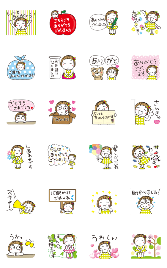 ▶︎動く!はな子32。ありがとういっぱい。 -LINEスタンプマニア