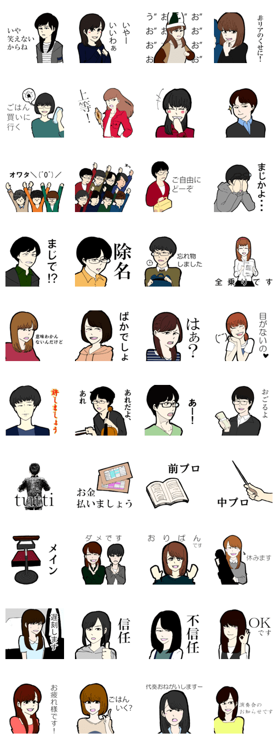 某山の上大学管弦楽団のスタンプです。団員の方もそうでない方にもぜひ!