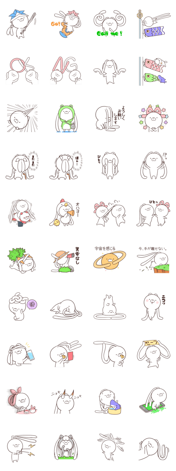 ゆるい、かわいい、耳なが~いウサギのスタンプ
