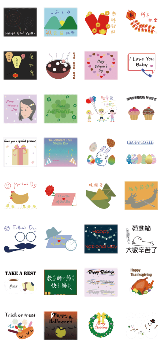 | スタンプ説明 | every holidays need us to celebrate in a year. |