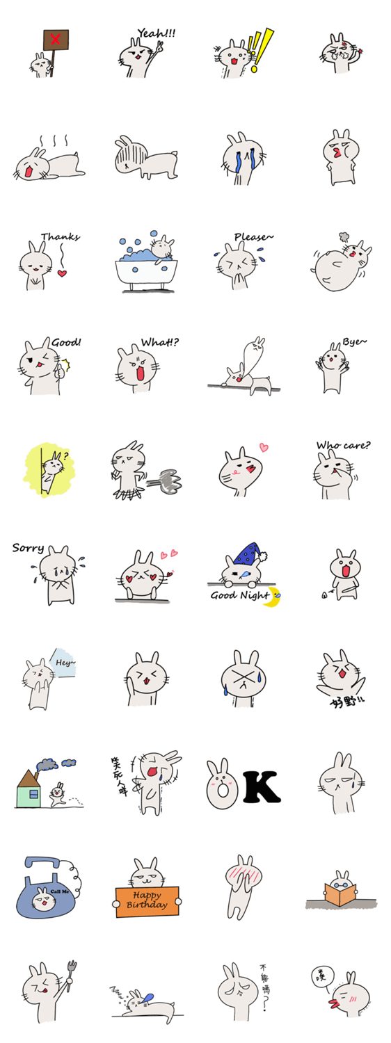 白ネコのあいうえお・・・ってるスタンプ