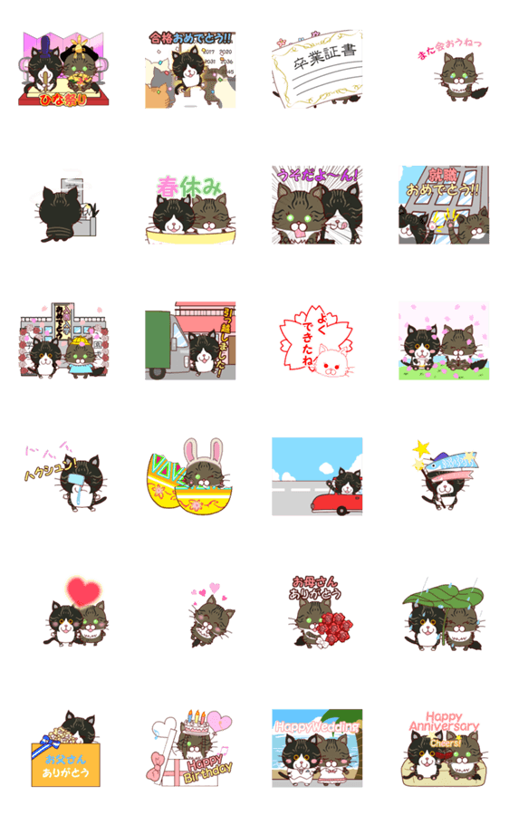 にゃんこ好きさんお待たせしました。 にゃんこ達の春スタンプです。 続編予定! 是非使ってみてください♪