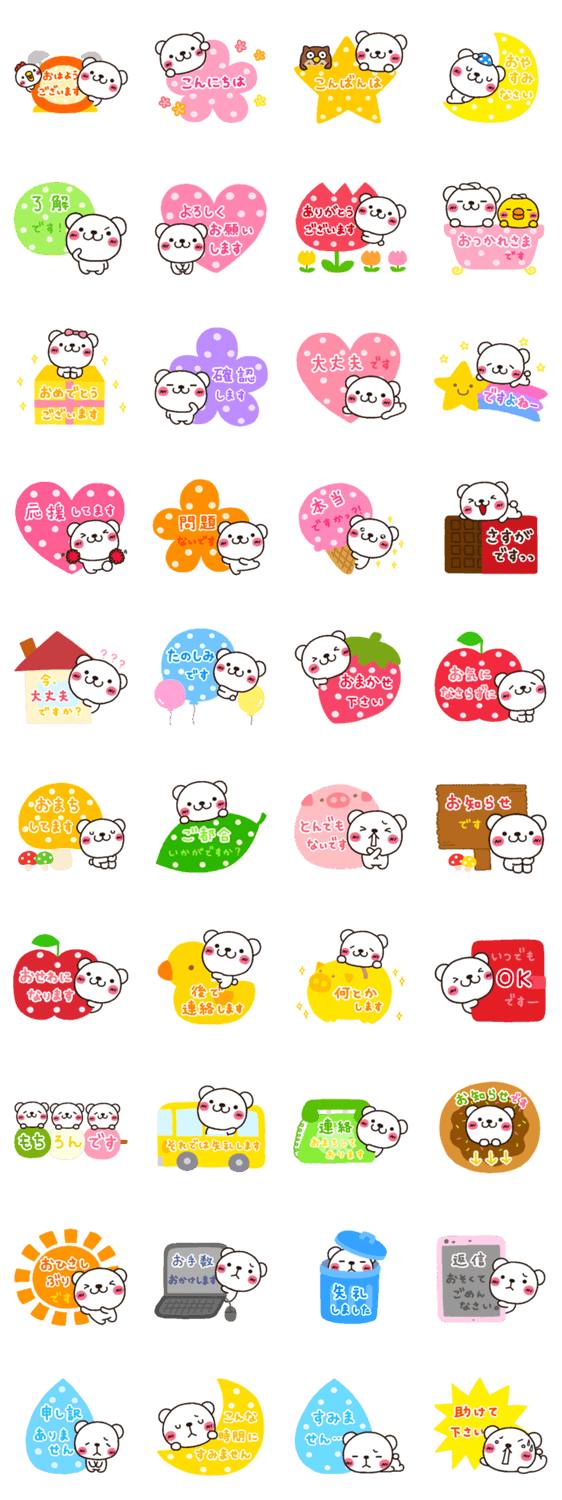 しろくまのメッセージ2作目、敬語・丁寧語verです。お友達にはもちろん、上司・先輩・目上の方にも使えるメッセージスタンプです。