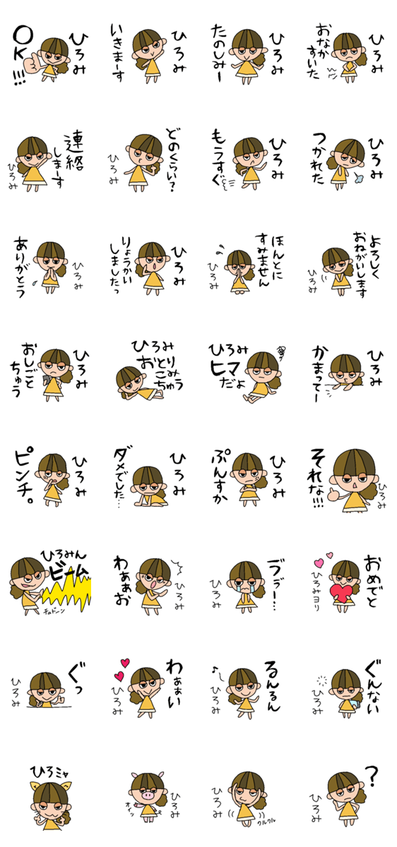 | スタンプ説明 | 全国のひろみちゃんにおくる、ヒロミ専用スタンプ! おちかくのひろみちゃんへのプレゼントにも♪ |