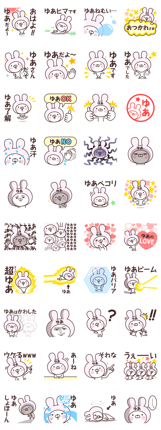 【ゆあ】の名前うさぎ -LINEスタンプマニア
