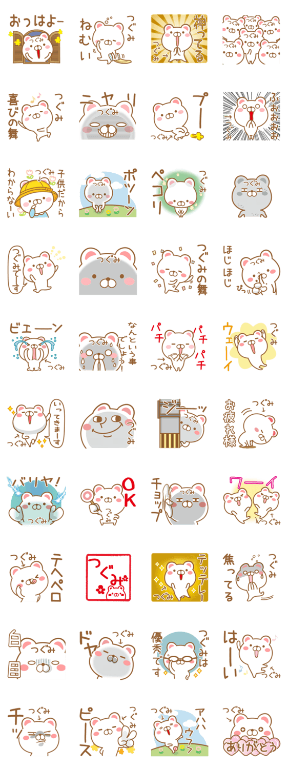 つぐみさんが使うスタンプ。亜実,亜美,愛実,鶫,健美,継美,貢など全国のつぐみ専用のスタンプ。
