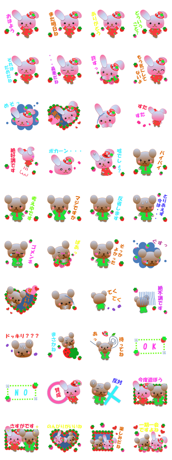 うさぎとくまのスタンプです。イチゴバージョンです。