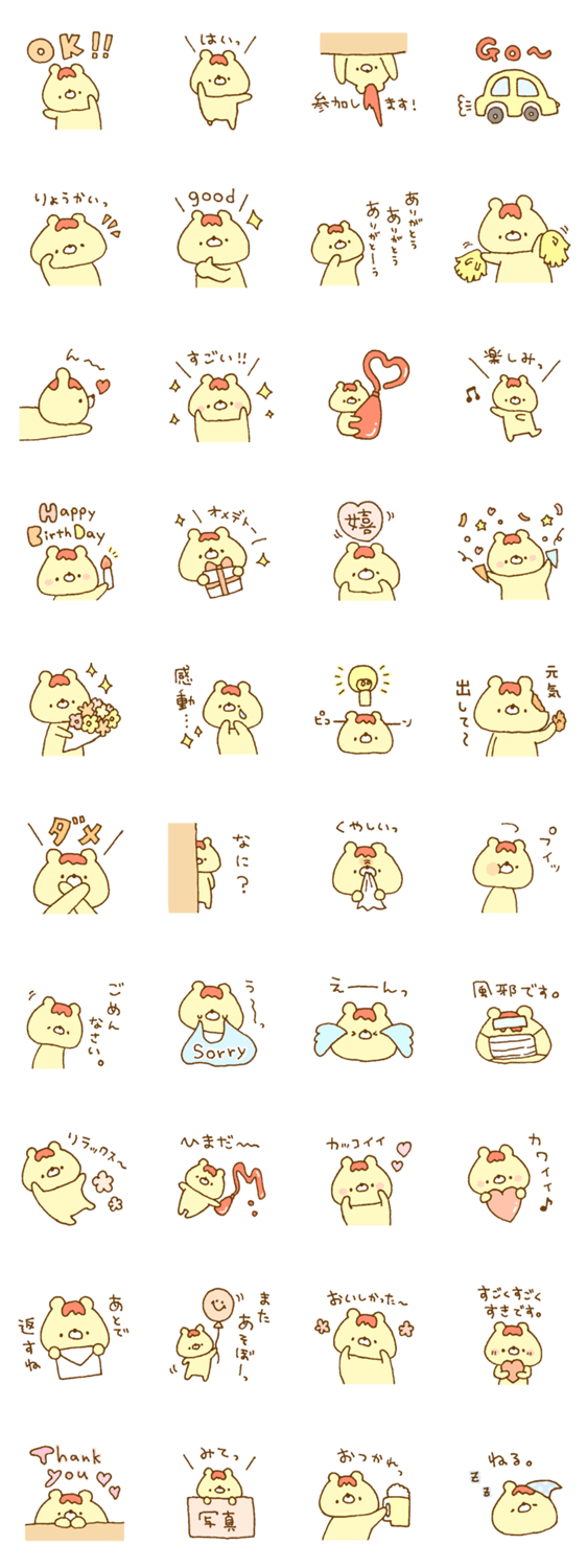 オムライス風クマのスタンプ2です。ふんわりかわいく♪ 友達・家族・恋人に…たくさん使ってください!