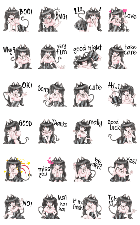 | スタンプ説明 | She has ears, cute, good mood. |