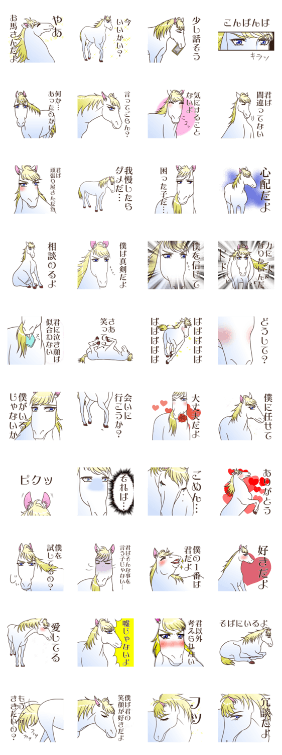 白馬の王子様………ではなく、おウマ様のスタンプです。 爽やかなイケメンプレイボーイ馬様とトークを楽しみませんか?