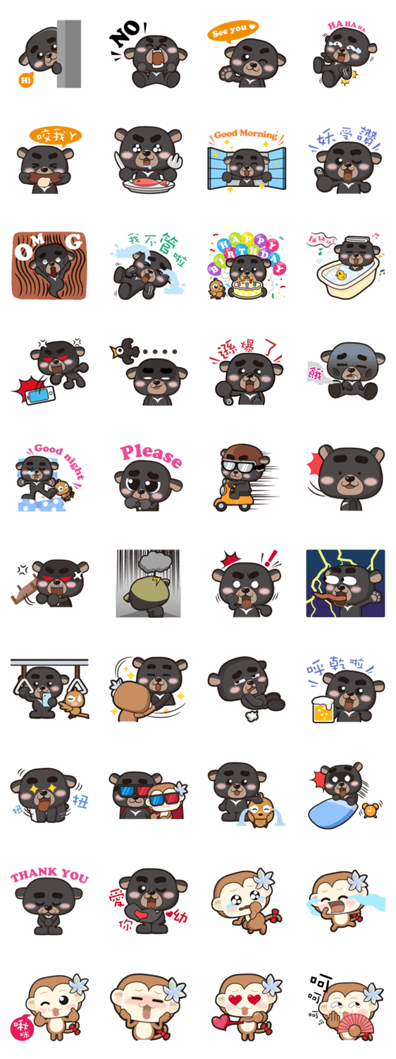 | スタンプ説明 | In the Formosan black bear, Formosan macaque, Taiwan thrush endemic main cartoon character, I hope to bring you joy! |