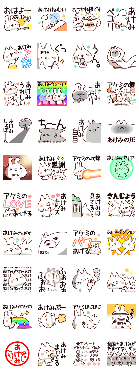 あけみ、ちゃん/さん/が使える、名前/あだ名スタンプ。アケミ/明美/朱美/明海/朱未/暁美/明見/あけ美/彰美/明実/明巳/明心/明未/明己/明深/明海/明見/朱実/専用。送る用。