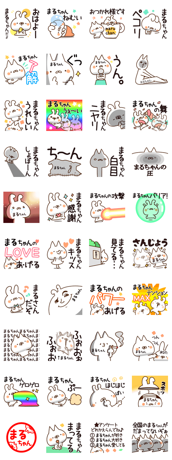 まるちゃん、が使える、かわいい名前/あだ名スタンプ。まる/丸/まるこ/まるみ/まるえ/まるよ/丸井/丸本/丸川/たまる/いまる/柿丸/丸吉/吉丸/専用ねこ、うさぎ。送る用。