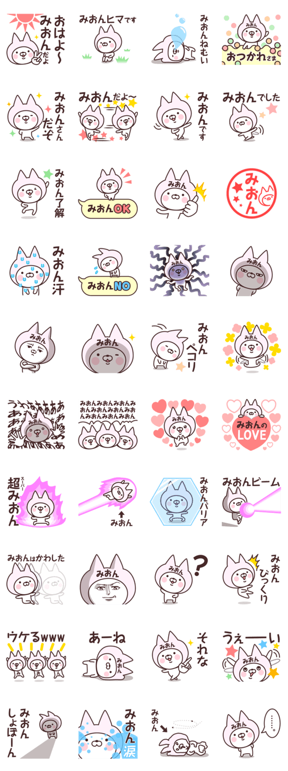 みおんさん、みおんちゃんが使える名前スタンプです。ミオンさんは是非どうぞ。