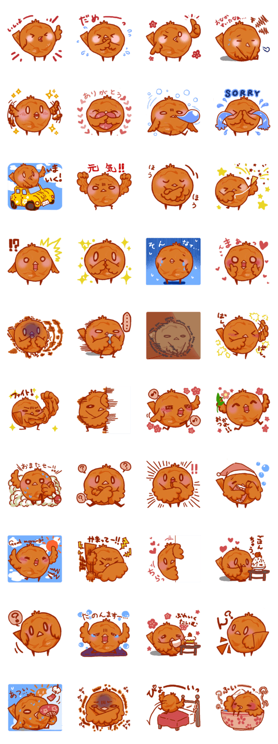 鳥と梅干をモチーフにした、梅干鳥・うめちゃんの日常会話で使えるスタンプです。