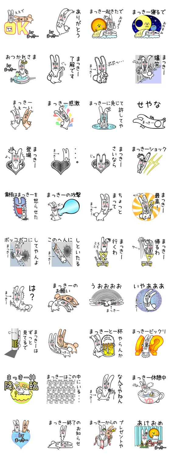 名前/あだ名が【まっきー/マッキー】のスタンプです。槇原/槙原/牧田/牧野/真木/真樹/麻紀/真紀子/まきこ・・さん専用、ゆるかわ関西弁のウサギのおっさんです。