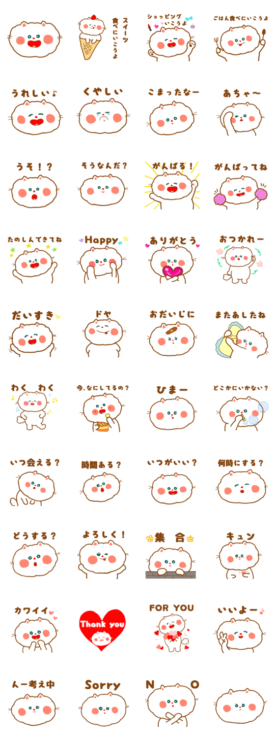 白ネコのあいうえお・・・ってるスタンプ