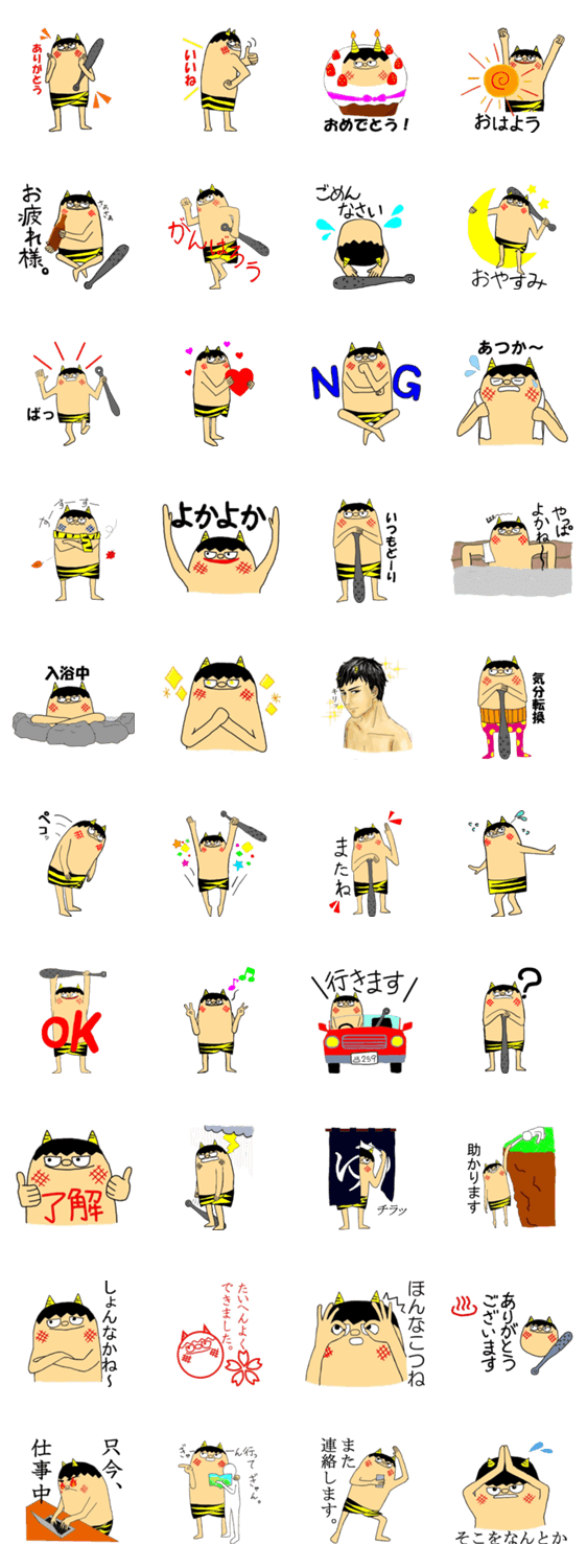 | スタンプ説明 | 熊本阿蘇の老舗温泉の公認キャラクター”ぬっかモン” 温泉につかる人々を見守っています |