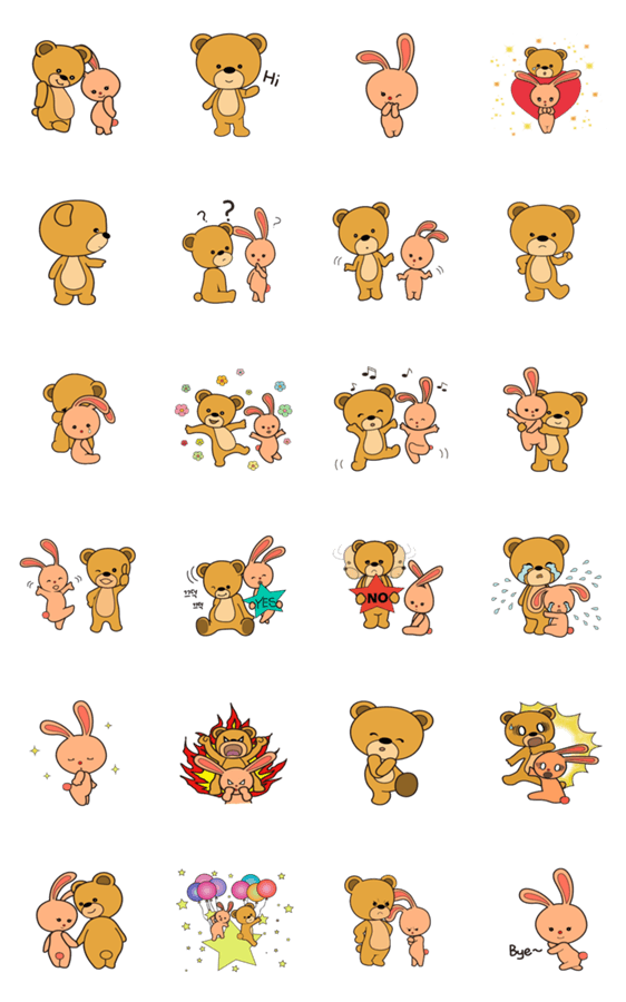 | スタンプ説明 | The cute Bear Bobo and Rabbit Tori are good friends .. |