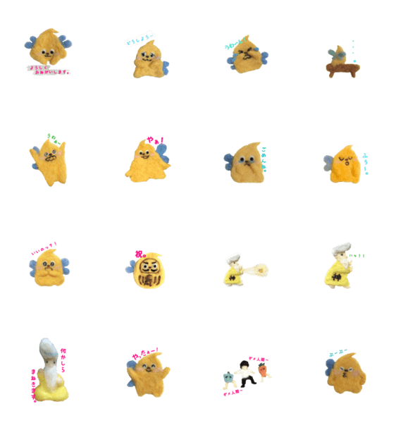 神様から生み出された妖精。羊毛フェルトのふわふわの質感のまま表情豊かにあなたのLINEに花を添えます。 是非楽しみながら使っていただけたら嬉しいです