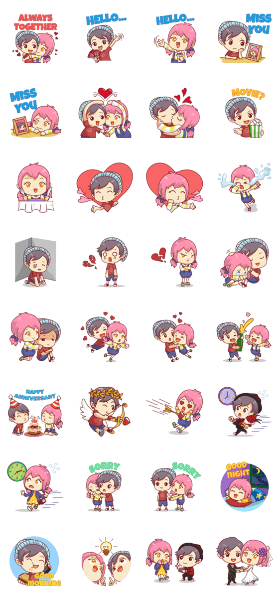 | スタンプ説明 | The cutest chibi couple is available to make your spouse heart goes boom boom. |