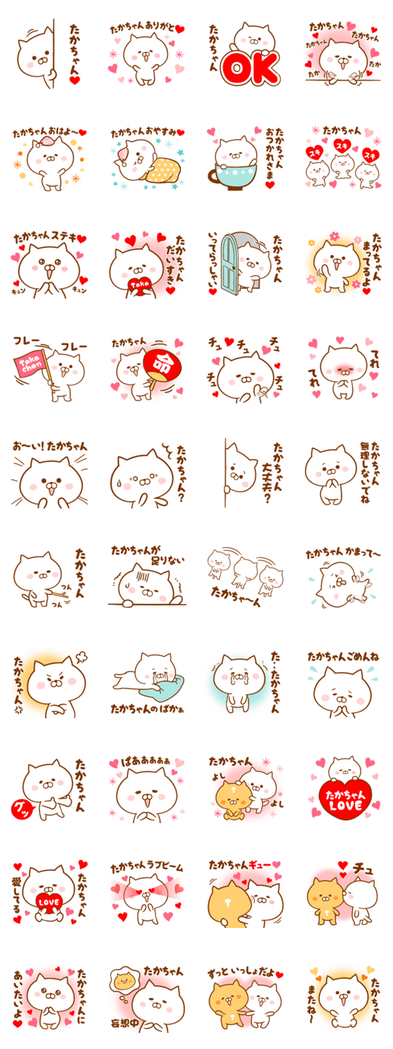 たかし/たかお/たかひろ/たかゆき/たかあき/たかのり/たかふみ/たかよし/たかこ等、たかちゃん、たかくんに送る名前・あだ名スタンプです。恋人、夫婦、友達に使ってね♥