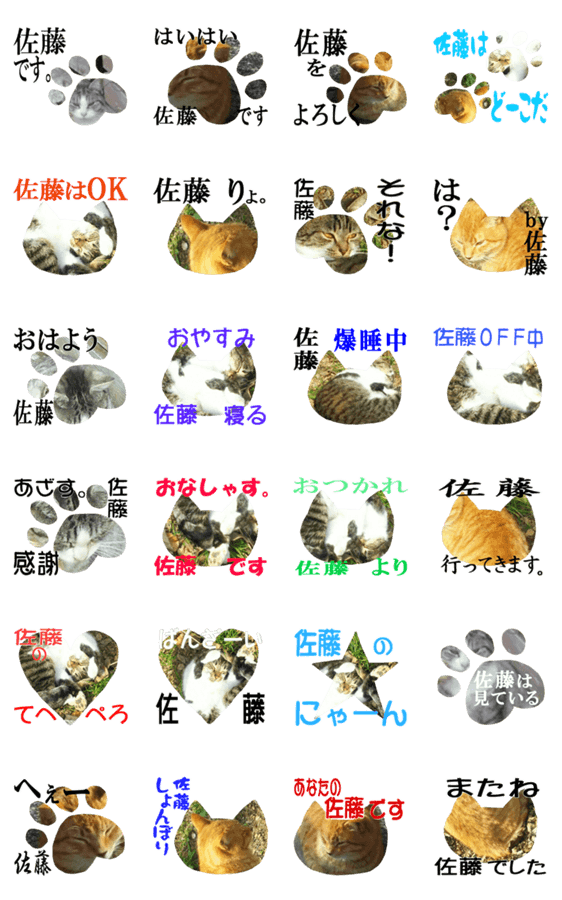 男の人も女の人も使える!さとうの名前スタンプだよ。猫の写真もかわいいよね。