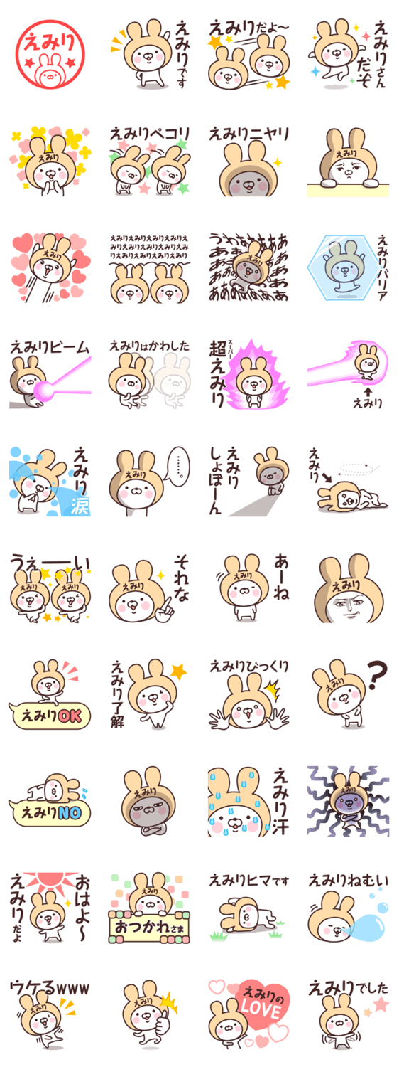 【えみり】の名前うさぎ -LINEスタンプマニア