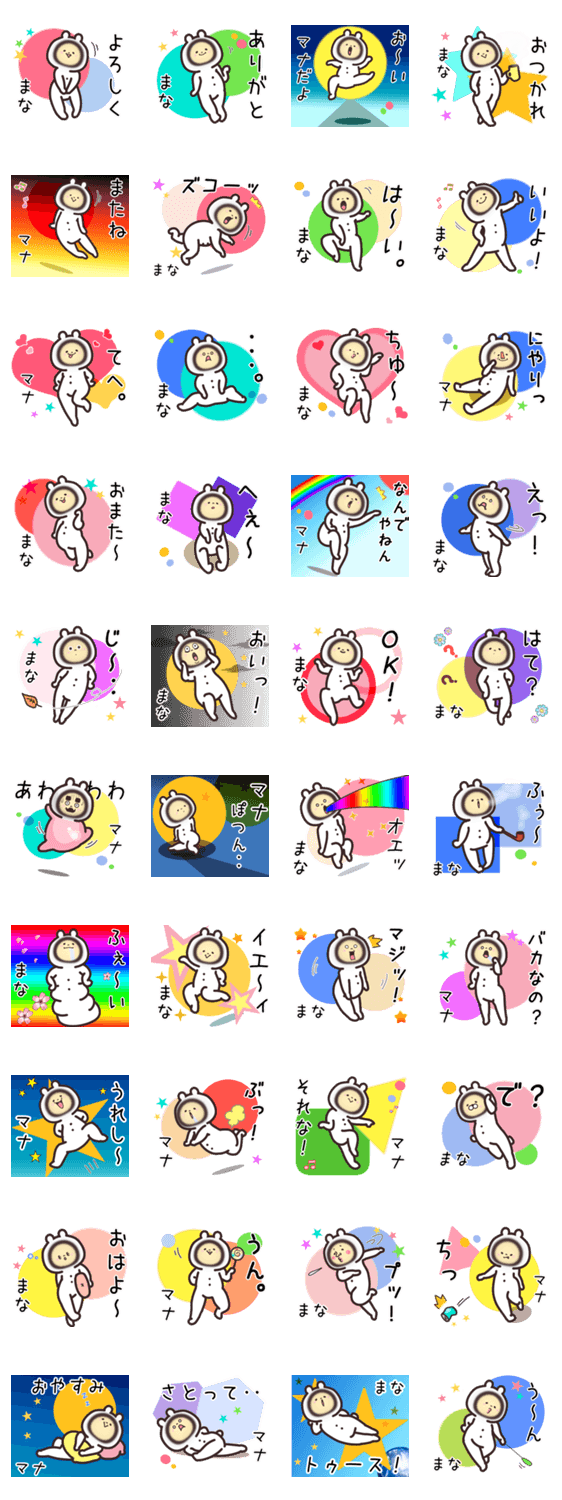 マナ(茉奈、愛菜、真奈、真名、真魚、眞奈、茉那、麻耶)等が使用するニックネーム、あだ名、まな専用名前スタンプです。これを使用してライン生活を存分楽しみましょう