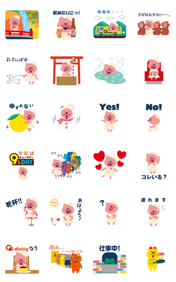 | スタンプ説明 | 「ABENO ABENO and his funny friends」のスタンプ第2弾がついに登場。今回は各キューズモールのメインキャラクターが主役となる、4つのバージョンを同時リリース。 |