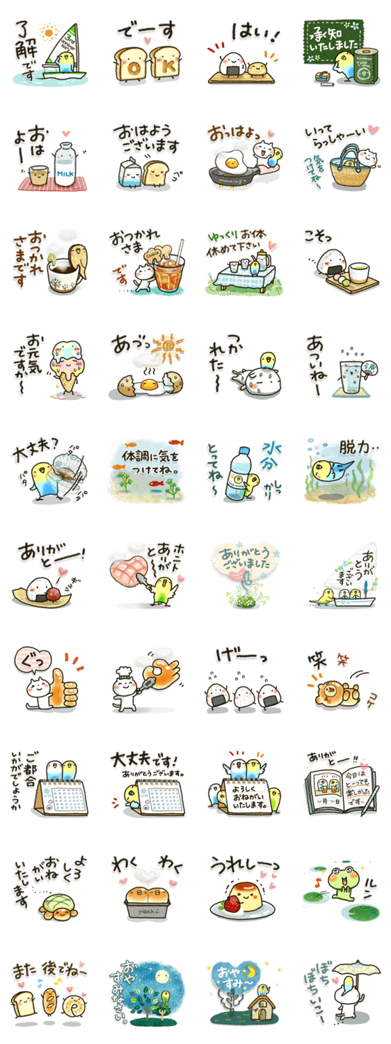 「可愛すぎない大人にやさしいスタンプ」シリーズ!爽やかな色合いの夏季向けスタンプです。