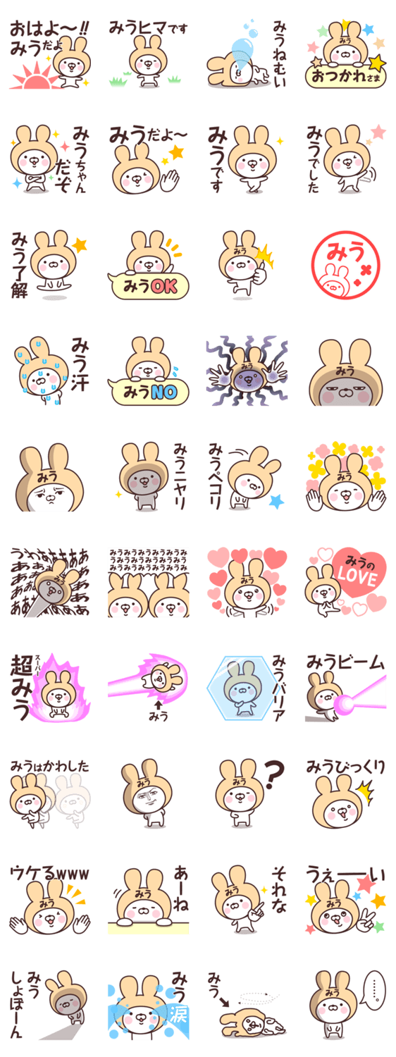 みうさん、みうちゃんが使える名前スタンプです。ミウさんは是非どうぞ。