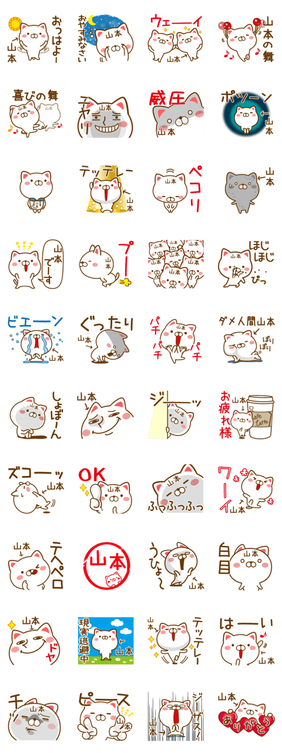 山本さんが使うスタンプ。苗字スタンプ。佐藤、鈴木、加藤、田中などの名字の中で山本さんに送る事に特化したスタンプです