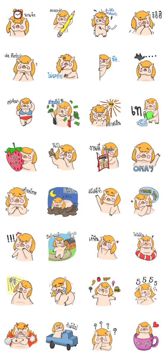 The lady pig with blonde hair, her name is MhooYor. Similarly to many chubby girls with different emotions, Mhooyor can express your feeling on your chat room!